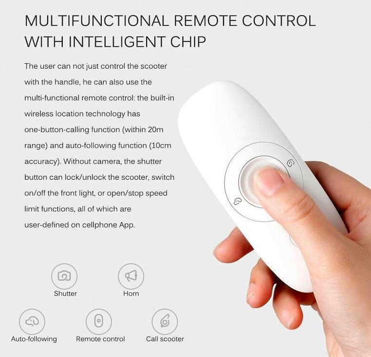 Multi-functional Remote Control: With wireless location technology, the remote control boosts one-button-calling and auto-following functions, which means you can use the controller to call the scooter back to you or follow you. Effective calling range within 20 meters, auto-falling function is accurate to approx. 5°.